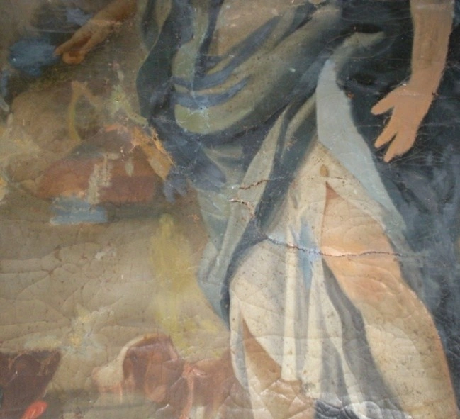 Foderatura, consolidamento del colore , pulitura, reintegrazione pittorica